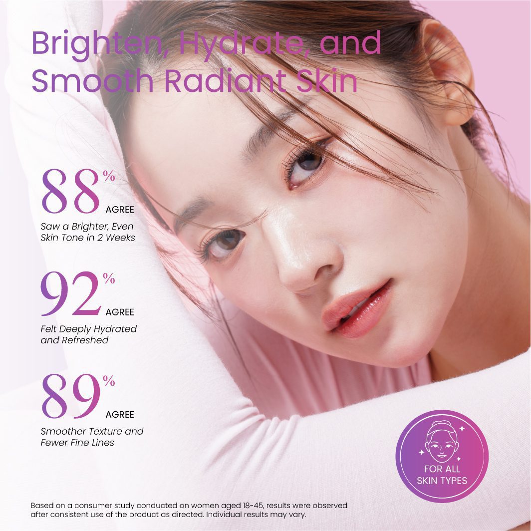 ✨ Brightens and evens skin tone — with Niacinamide, Licorice, and Rose Extract.