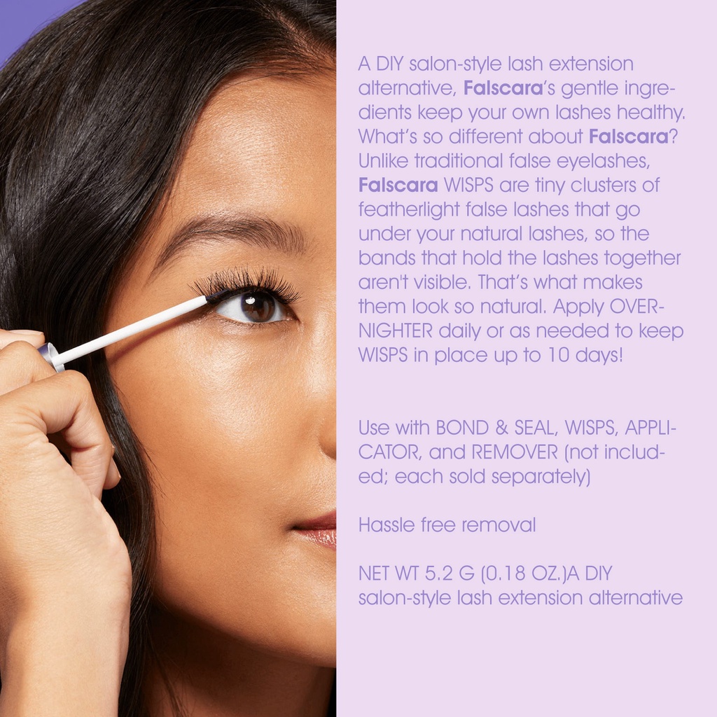 A DIY salon-style lash extension alternative, Falscara’s gentle ingredients keep your own lashes healthy. What’s so different about Falscara? Unlike traditional false eyelashes, Falscara WISPS are tiny clusters of featherlight false lashes that go under your natural lashes, so the bands that hold the lashes together aren’t visible. That’s what makes them look so natural. Apply OVERNIGHTER daily or as needed to keep WISPS in place up to 10 days!