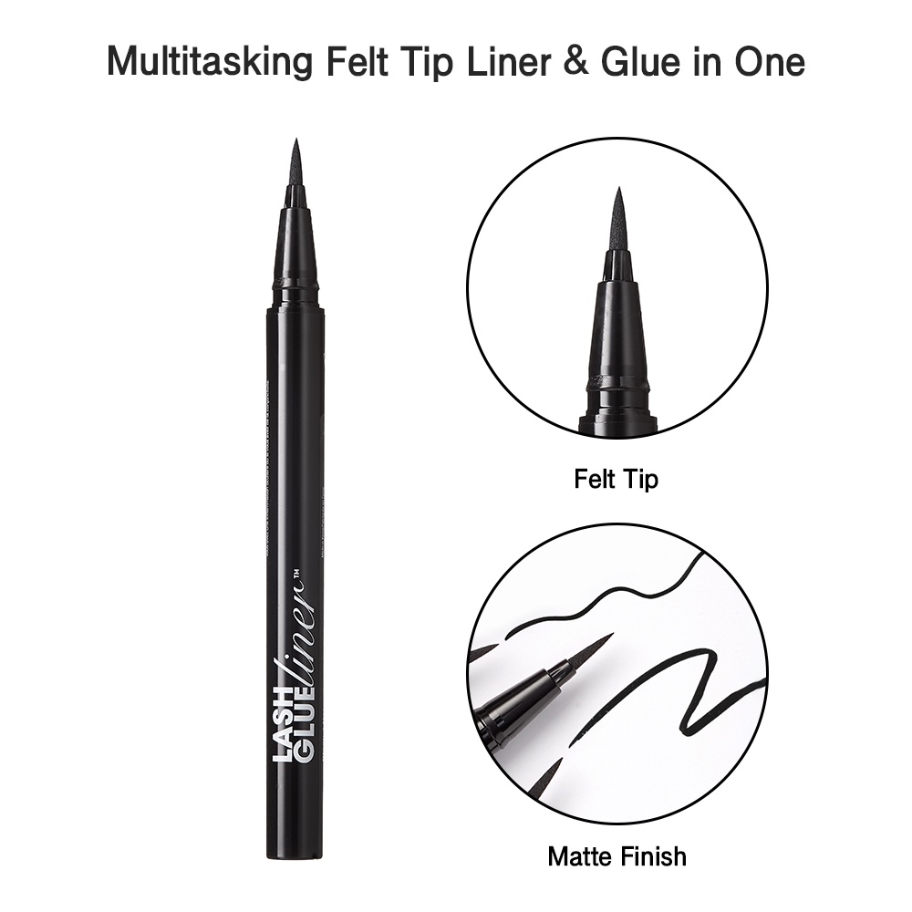 All that was tricky about gluing on false eyelashes is a thing of the past! From a world leader in false eyelashes: this lash glue/eyeliner makes false eyelash application absolutely foolproof! No eyelash adhesive to mess with–Black or Clear Lash GLUEliner glides on along your lashline, ready for your favorite falsies to adhere in a seamless way. Apply the NEW Lash GLUEliner as you apply your eyeliner! NET WT 0.7 mL (0.02 fl. oz.) Made in Korea.