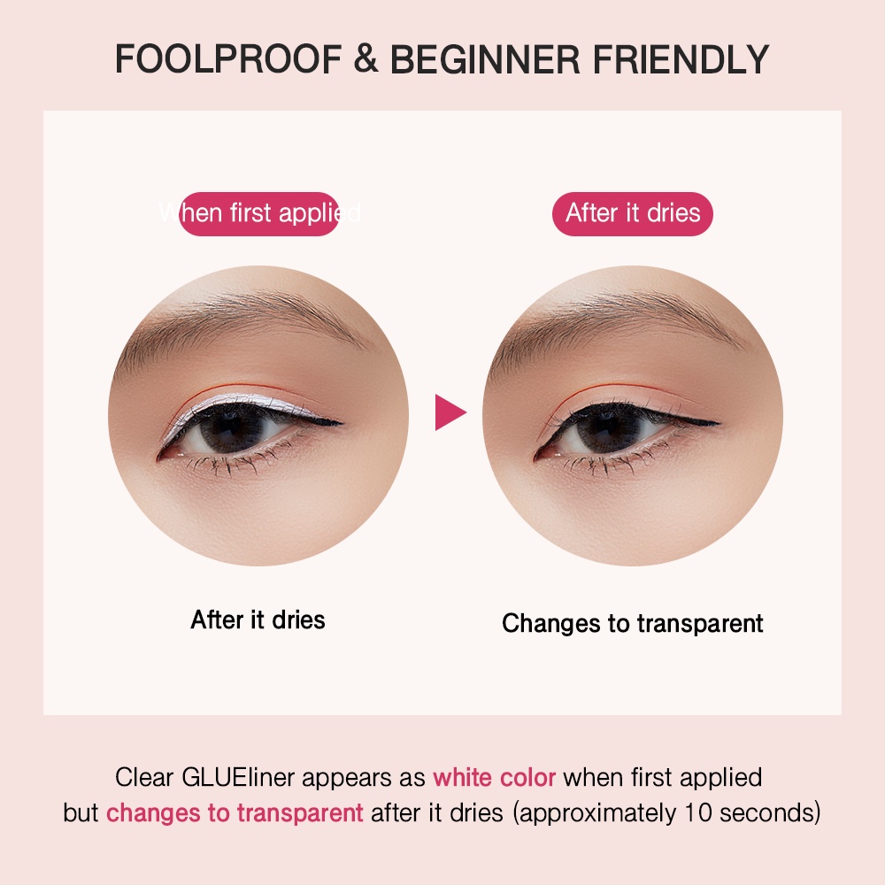 • GLUEliner is formulated to last all day, but oily skin might require reapplication during the day.