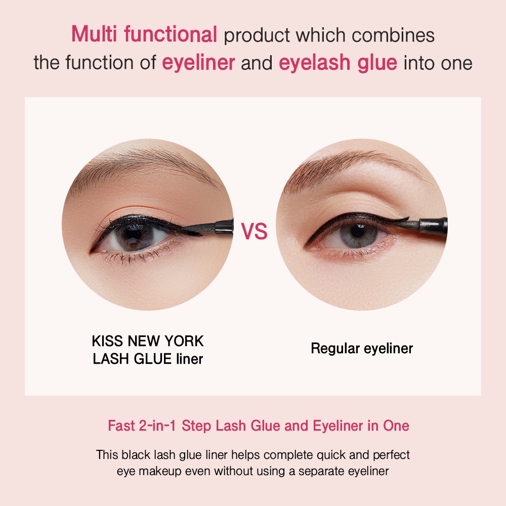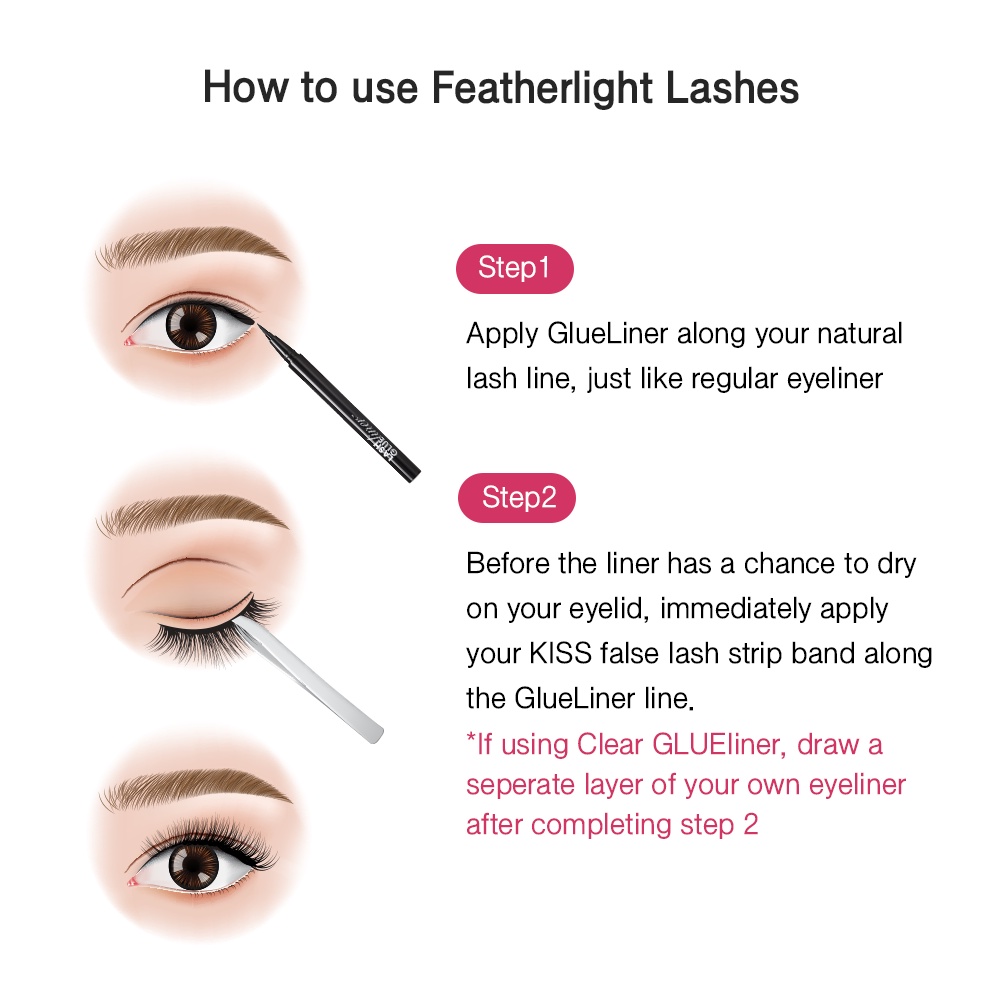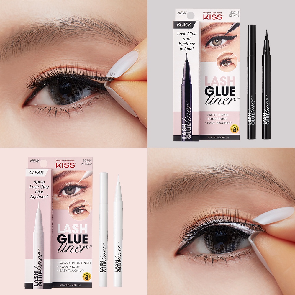 Next Level Lash Glue is HERE! Experts consider KISS lash glues and applicators to be the “gold standard”. Now, we’re taking it to a whole new level: GLUEliner (in Black or Clear) glides on as eyeliner & performs like lash glue. Simply line your upper lid, place lashes, and DONE! It’s never been easier!