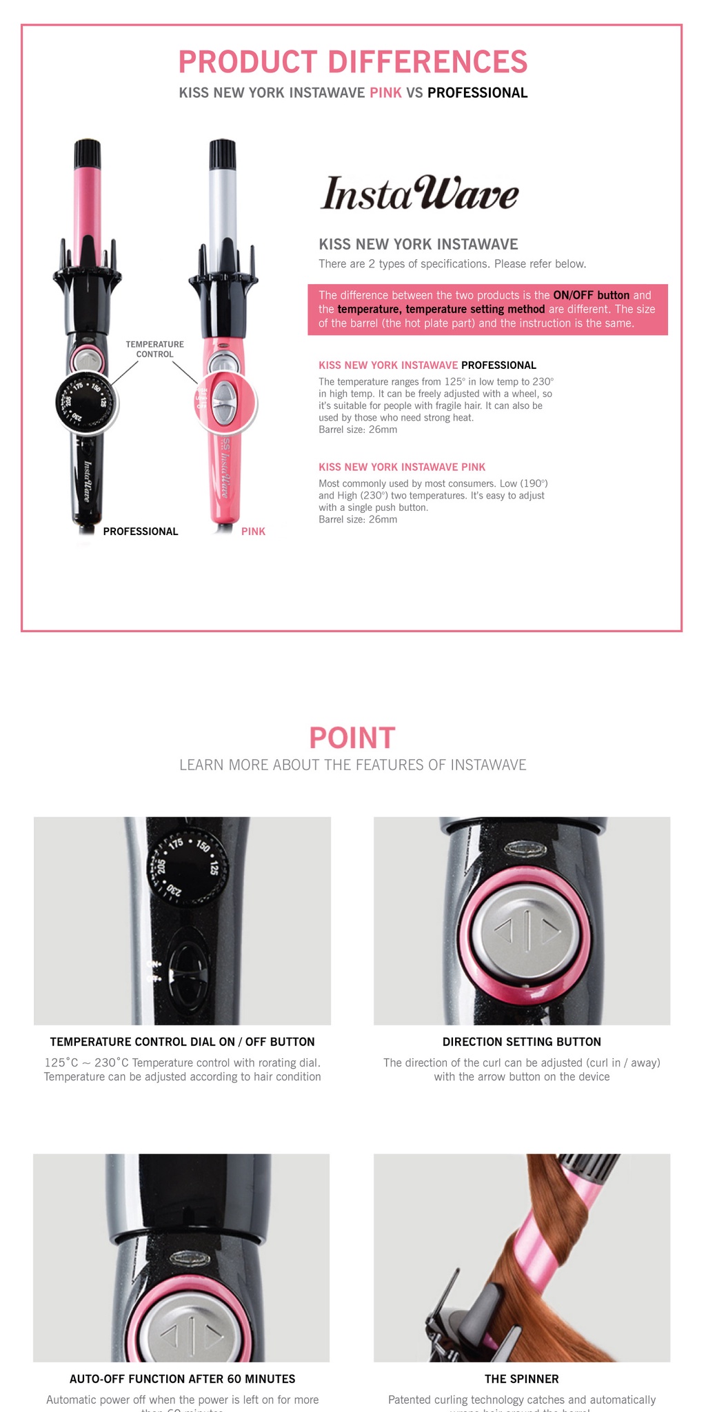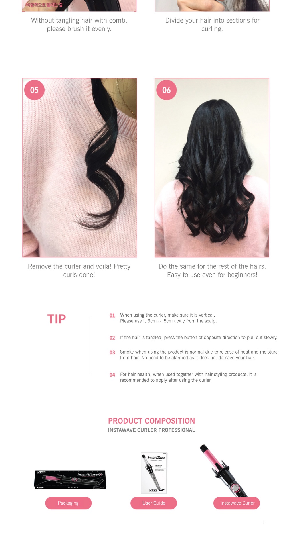 Every hair type, texture, length and ethnicity can use the KISS Pro Instawave Automatic Curler. It creates a variety of styles – Tight Curls, Beachy Waves, Bouncy and Voluminous Curls, or Lift and Volume. Tame frizz and humidity or glam yourself up for the holidays. Depending on the length of your hair and barrel size you can recreate yourself with the KISS Pro Instawave.
